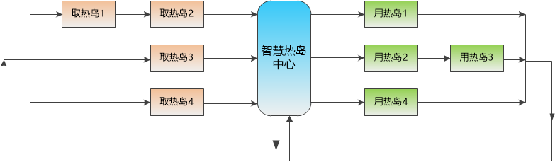 智慧熱島余熱利用技術(shù)主要包括取熱島、用熱島和熱島中心。
