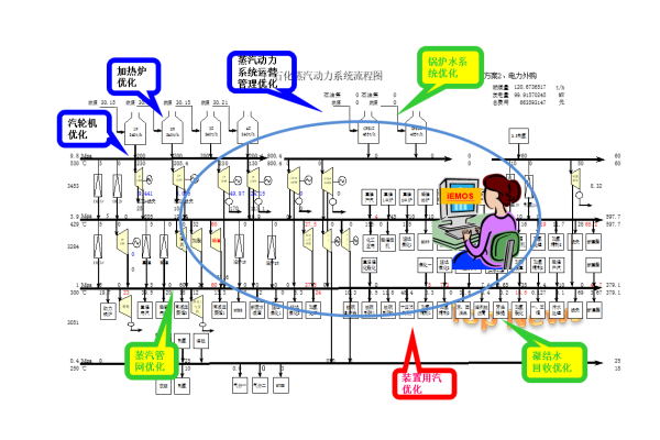 蒸汽動力系統(tǒng)優(yōu)化產(chǎn)品以流程工業(yè)企業(yè)的蒸汽動力系統(tǒng)為研究對象,對產(chǎn)汽、用汽進行全面的診斷、分析和優(yōu)化,并建立各壓力等級蒸汽管網(wǎng)模型,研究不同工況下蒸汽平衡;同時優(yōu)化蒸汽凝結(jié)水回收系統(tǒng)。
